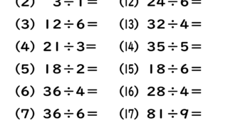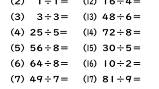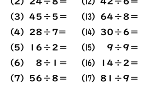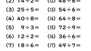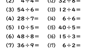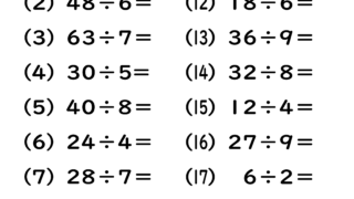 割り算プリント10問題はすべて無料で使えます。下記の画像、もしくは、【問題ダウンロード】をクリックして印刷してご利用ください。
