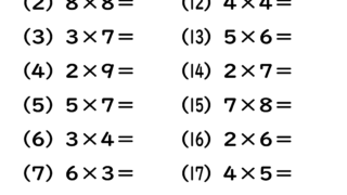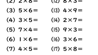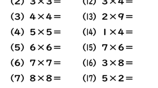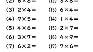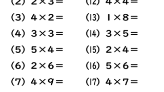 掛け算プリント1問題はすべて無料で使えます。下記の画像、もしくは、【問題ダウンロード】をクリックして印刷してご利用ください。