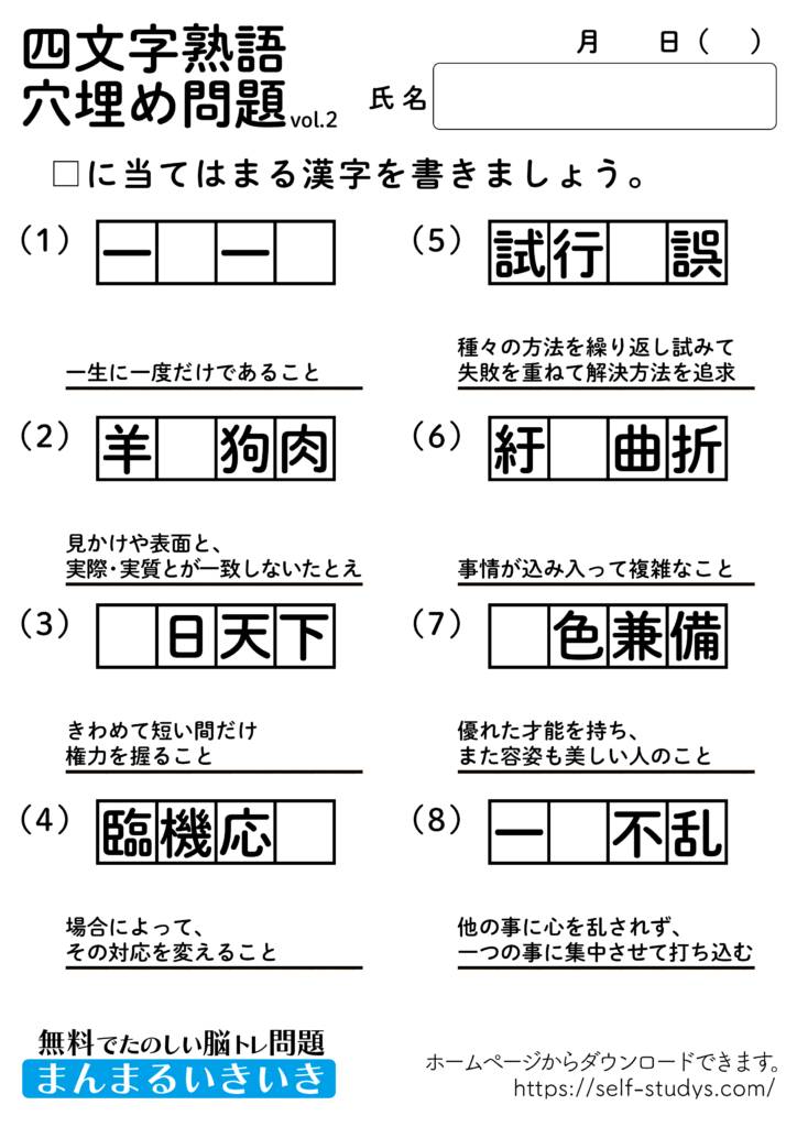 下記の画像、もしくは、【問題ダウンロード】をクリックして印刷してご利用ください。