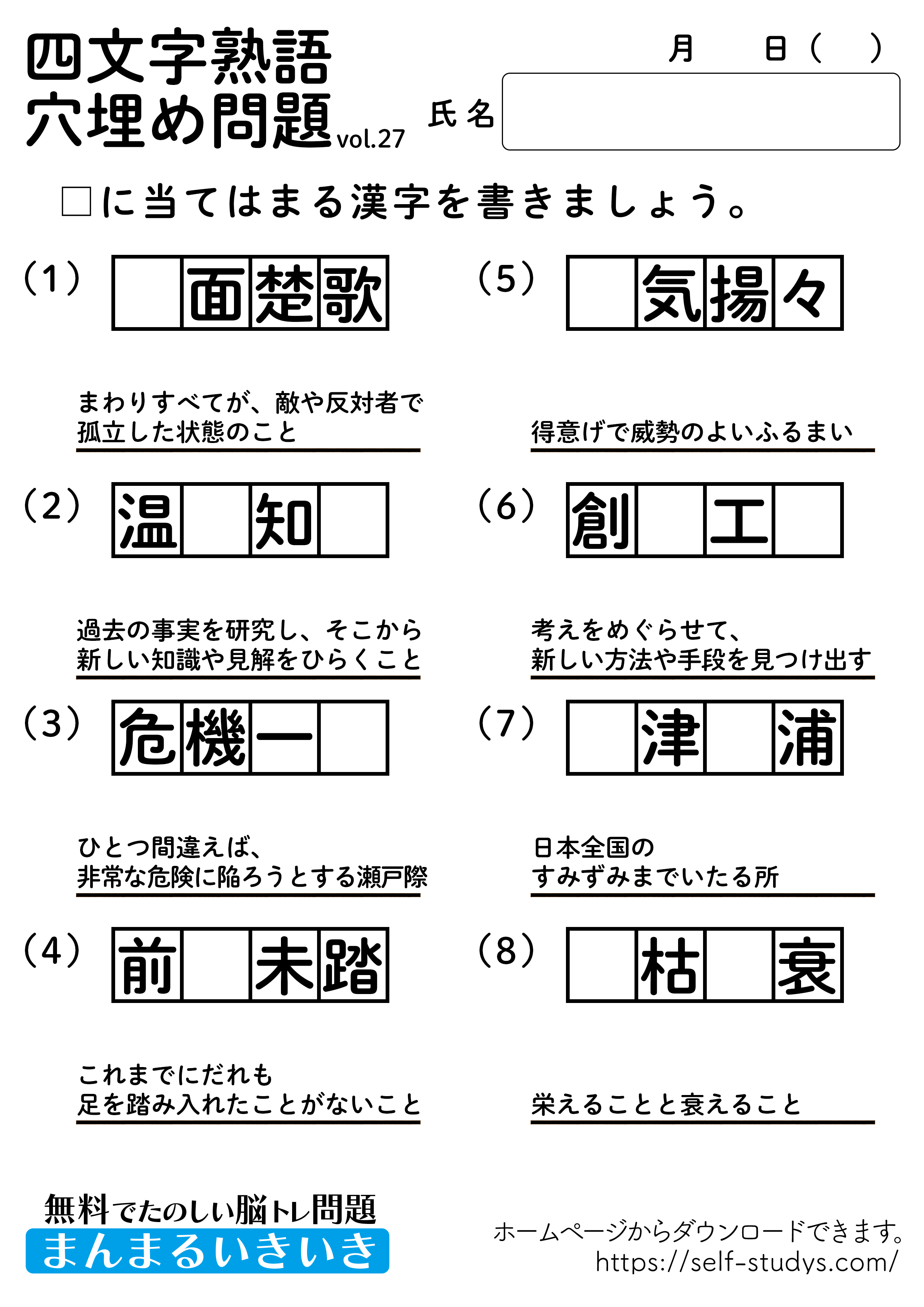 下記の画像、もしくは、【問題ダウンロード】をクリックして印刷してご利用ください。